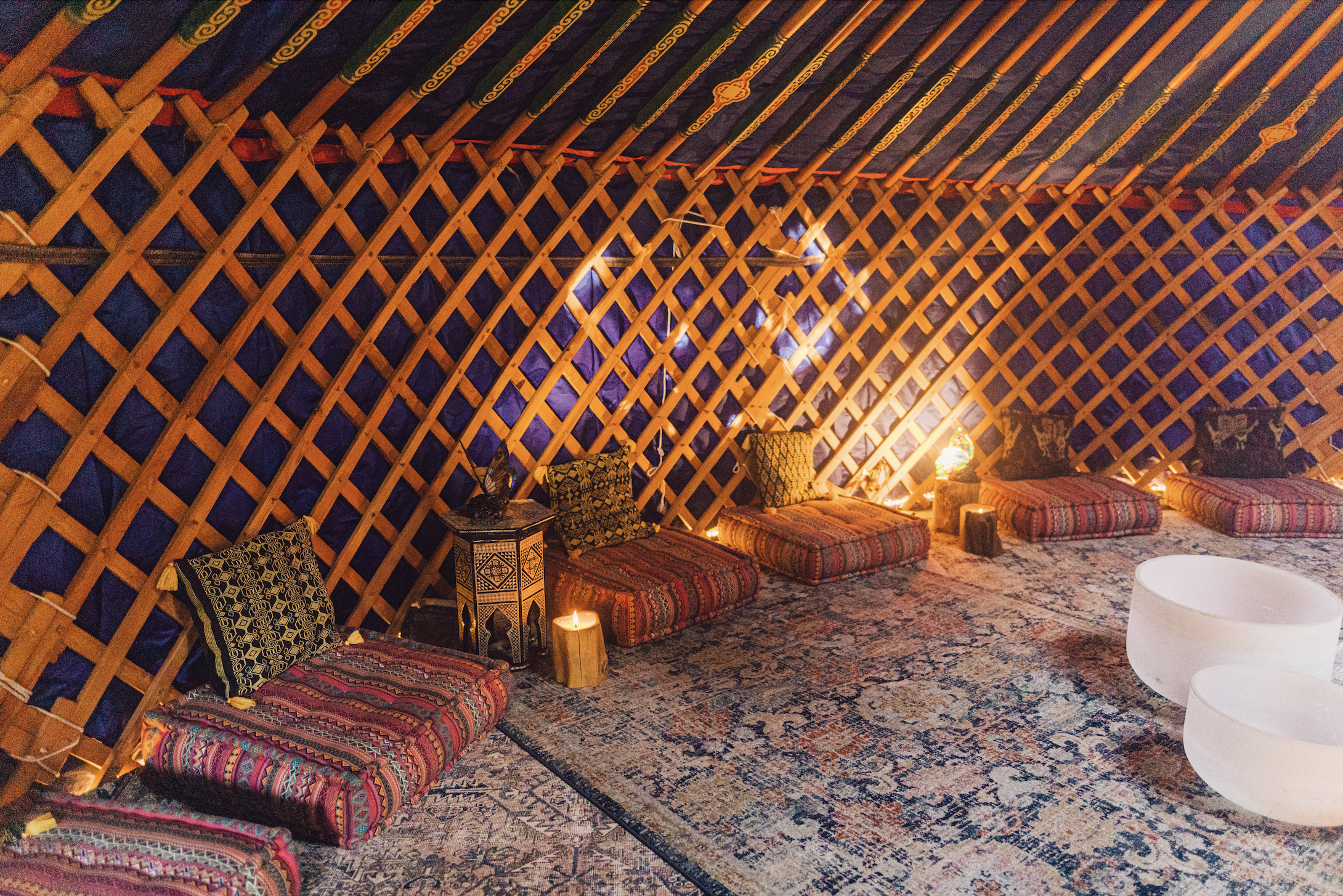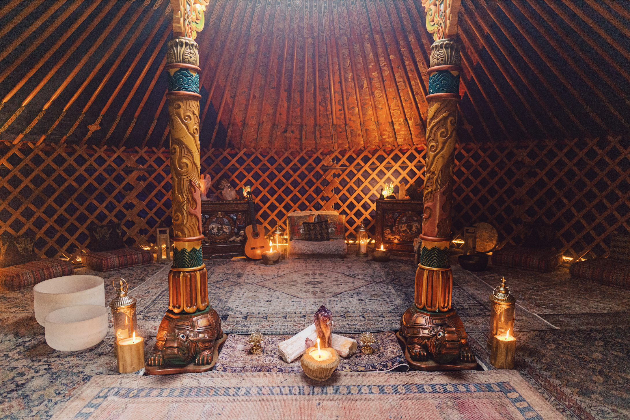 A wondrous temple awaits in the heart of our peaceful land. This sanctuary features a beautiful hand-carved rainbow Mongolian yurt with intricate painted walls imbued with the sacred energy of a prayer house, evoking a sense of mysticism and wonder. A large skylight in the center floods the 30-foot yurt with natural light, creating a serene and inviting atmosphere. Step into this magical world and experience the power and beauty of this sacred space.